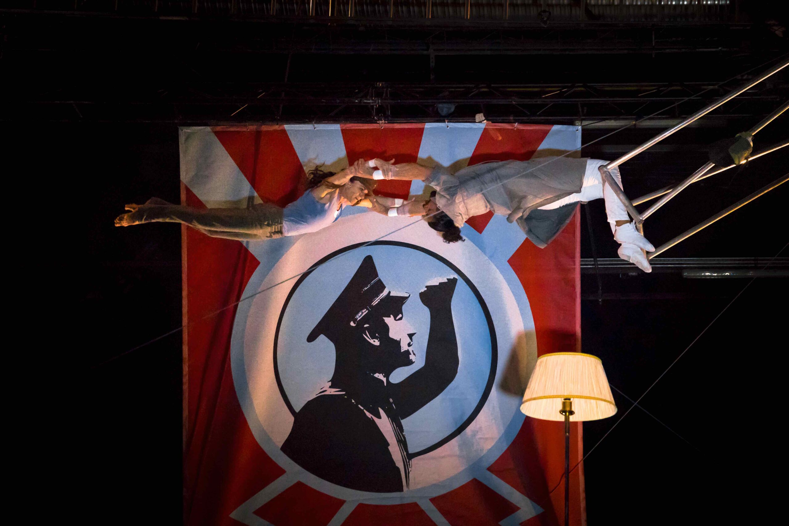 Interprété par neuf artistes, il est une performance de trapèze volant mêlant virtuosité acrobatique, esthétique et humour. Issu du spectacle La Tangente du Bras Tendu, il rend hommage à la Liberté et à la Résistance, tout en jouant de façon critique et ludique avec les codes de la propagande