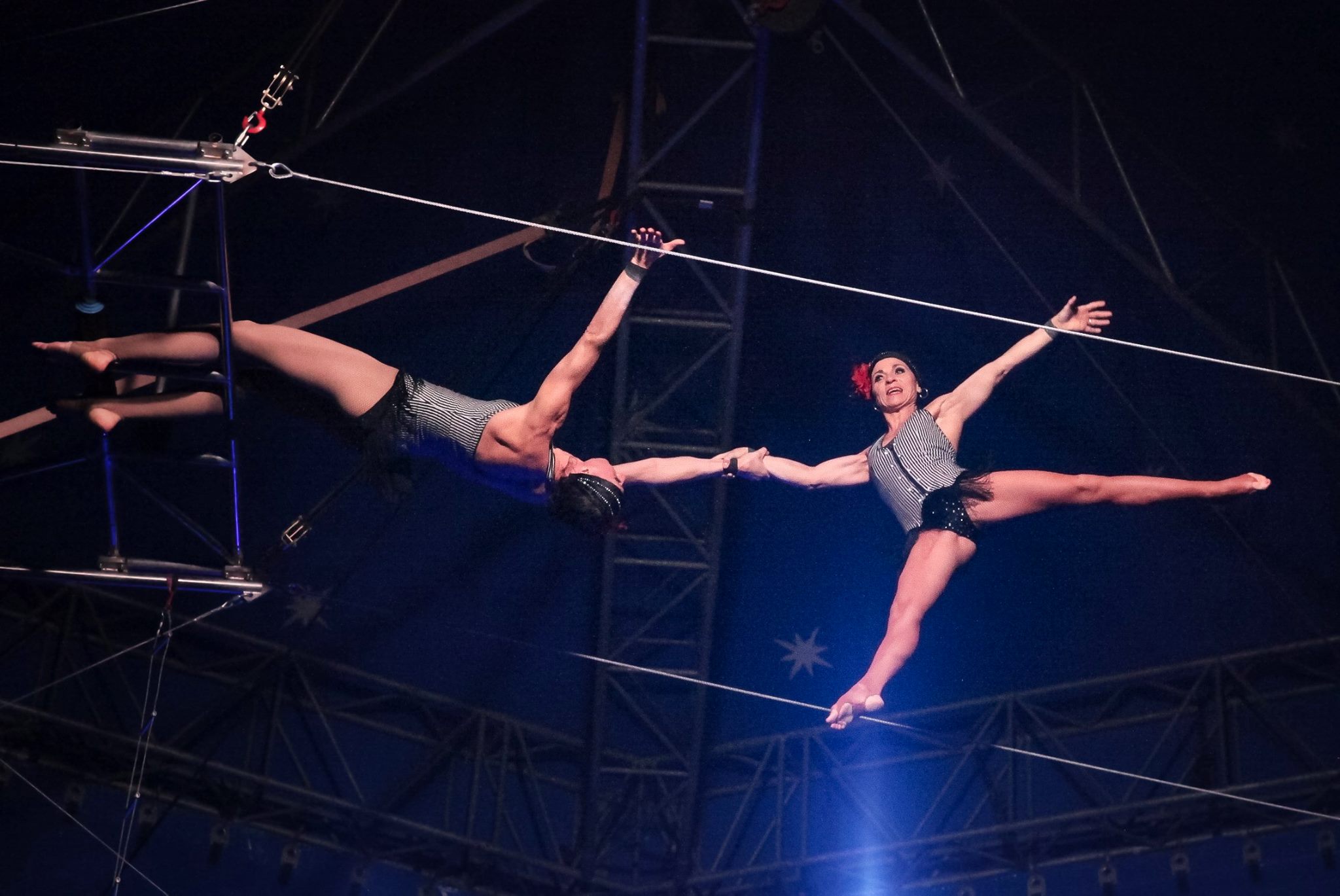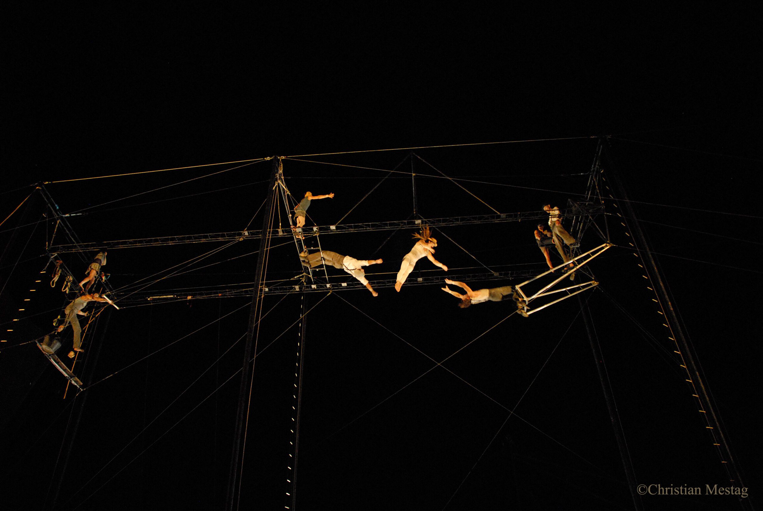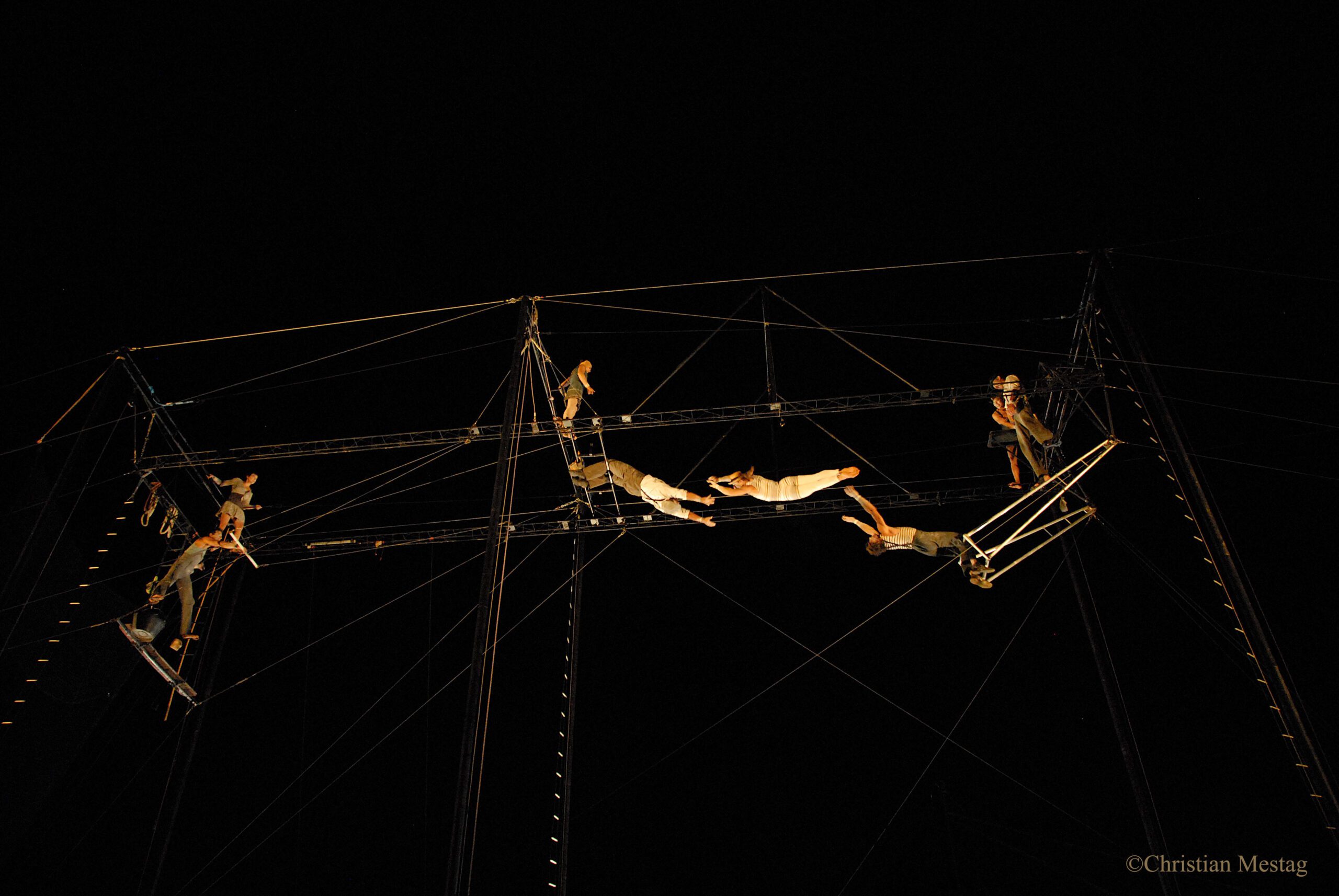 Artistes passionnés par le trapèze volant et les arts aériens, ils créent de nombreux spectacles.